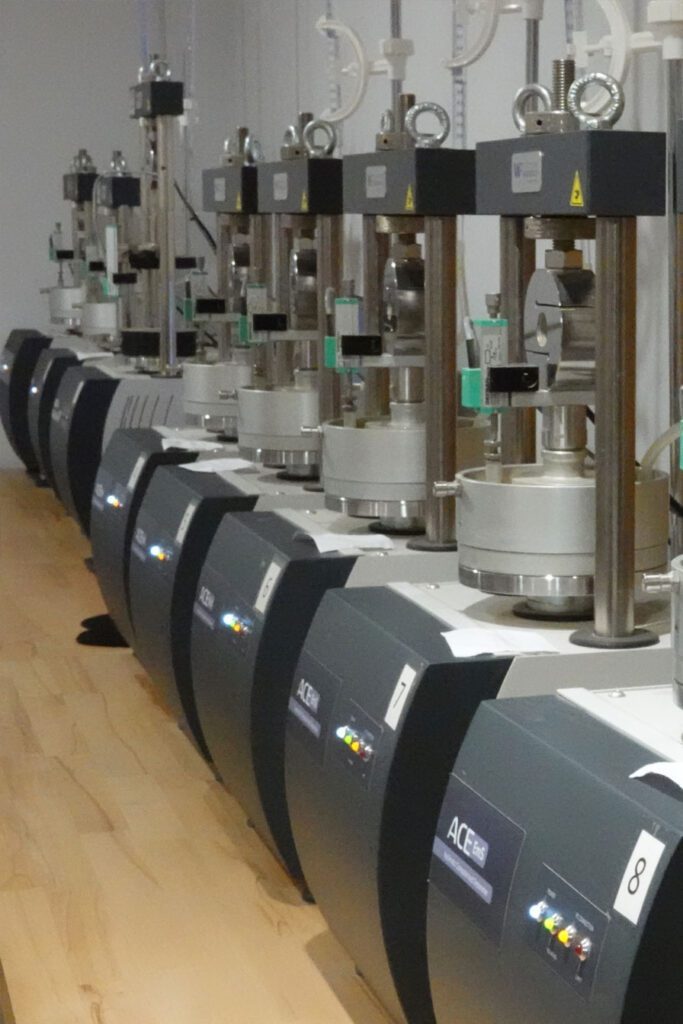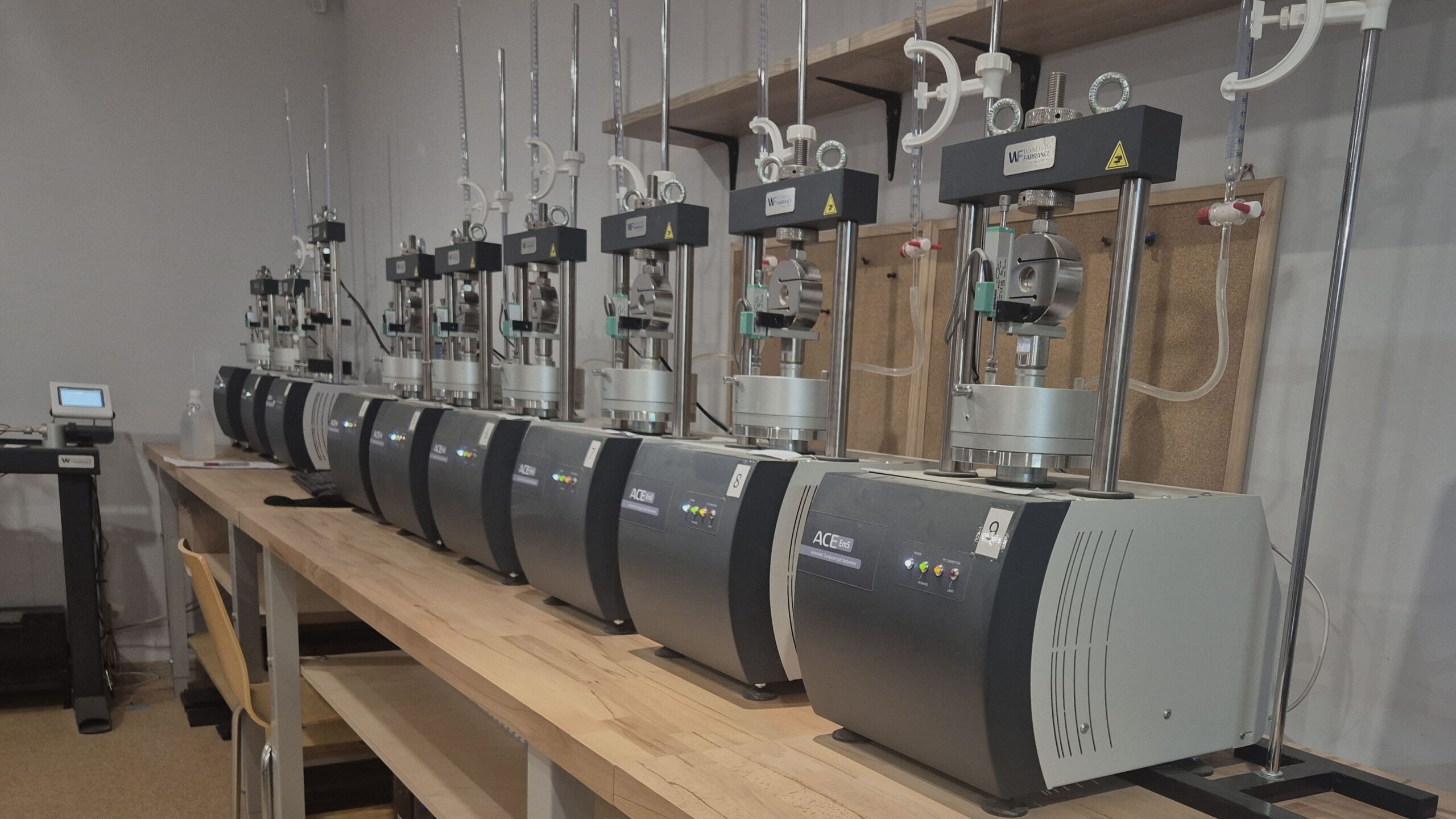 W naszej pracy wykorzystujemy nowoczesny sprzęt terenowy i pomiarowy. Laboratorium gruntów wyposażone jest w nowoczesną aparaturę pomiarową miedzy innymi: automatyczne edometry (z pomiarem filtracji), aparaty do ściskania jednoosiowego, skrzynkowe, penetrometry stożkowe i inne urządzenia, pozwalające precyzyjnie określić parametry gruntu.